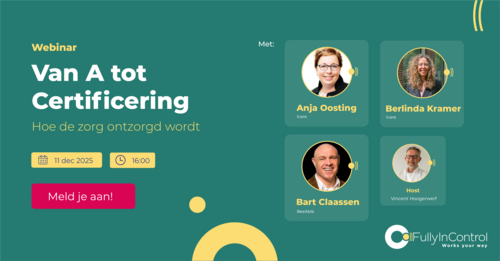 Tijdens dit webinar laten we zien hoe zorgorganisaties stap voor stap grip krijgen op hun certificeringstraject, zonder te verdrinken in beleid en papierwerk. Met concrete voorbeelden uit de praktijk laten we zien hoe je met een pragmatische aanpak voldoet aan de eisen én je organisatie ontzorgt.